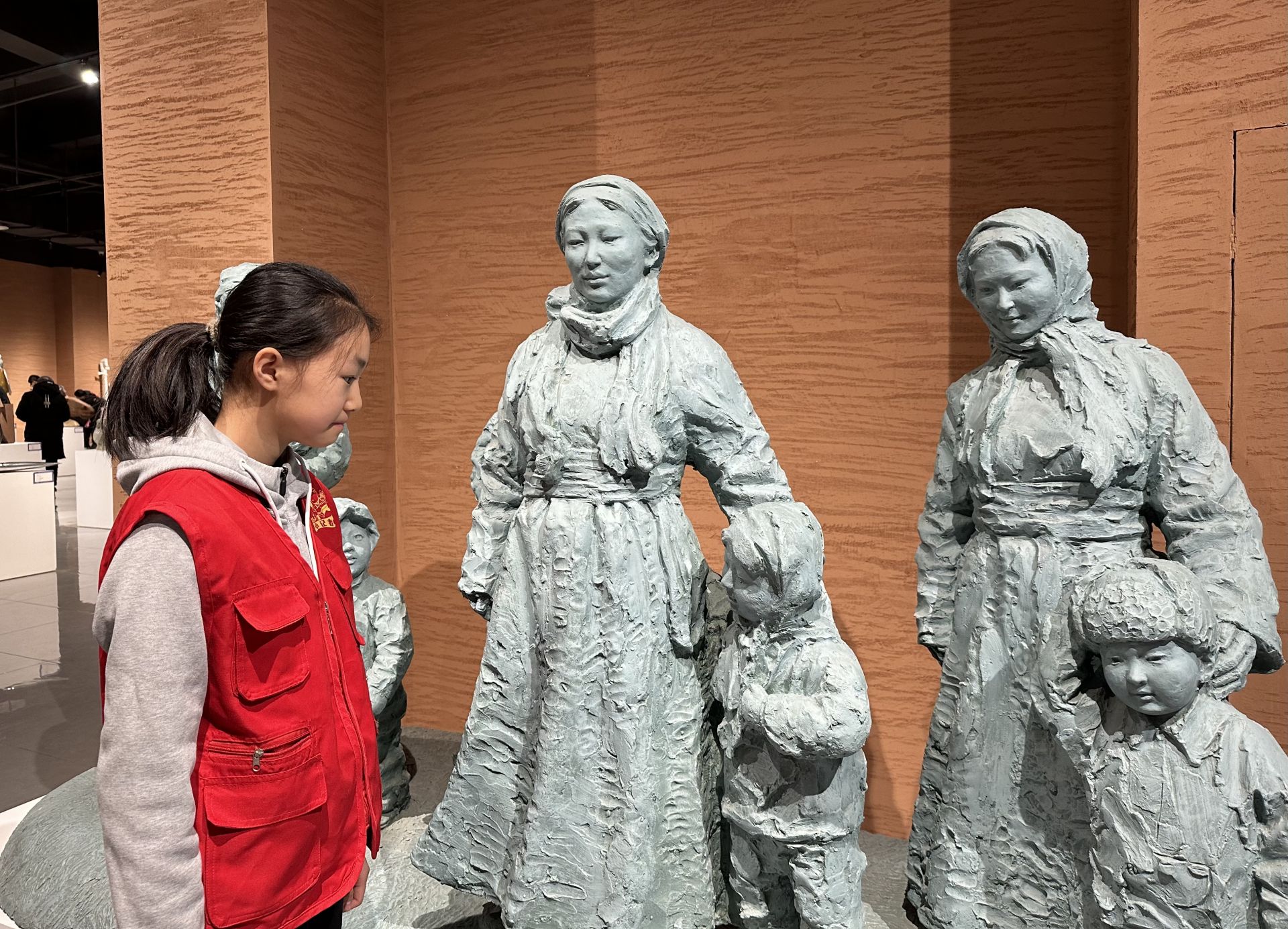 在“守望北疆”專題雕塑展中,小記者和家長(zhǎng)們還參觀了“三千孤兒入內(nèi)蒙”“齊心協(xié)力建包鋼”“草原英雄小姐妹”等雕塑作品,聆聽了講解員講述的內(nèi)蒙古的動(dòng)人歷史故事?!奥犃巳Ч聝旱墓适?,讓我很感動(dòng),同時(shí)也感受到草原母親博大的胸懷?!毙∮浾邚垰J說,通過講解員的詳細(xì)解說,他不僅感受到了雕塑藝術(shù)的魅力,還知道了雕塑作品的創(chuàng)作過程極其艱辛,更通過一件件雕塑作品,學(xué)習(xí)到了紅軍長(zhǎng)征、草原英雄小姐妹、獵人海力布、三娘子等英雄事跡和歷史文化故事,通過這樣的參觀和學(xué)習(xí),讓他們收獲滿滿。