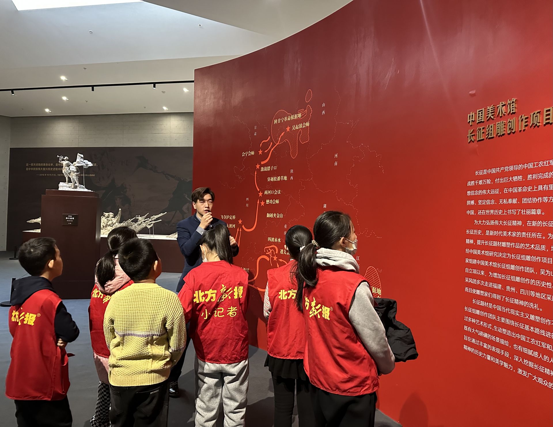 小記者們重點(diǎn)參觀學(xué)習(xí)了中國(guó)美術(shù)館館藏雕塑作品《長(zhǎng)征組雕》,該作品通過精湛的雕塑技藝和細(xì)膩的處理,生動(dòng)地再現(xiàn)了革命先烈的英勇形象和感人事跡。通過參觀,小記者們重溫了歷史,深入了解了每一個(gè)重要事件背后的意義,同時(shí)感懷先輩長(zhǎng)征之路的艱辛不易。