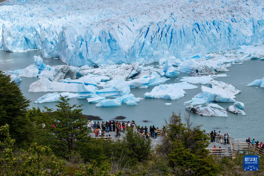 1月3日,游客在阿根廷圣克魯斯省冰川國家公園觀賞莫雷諾冰川。